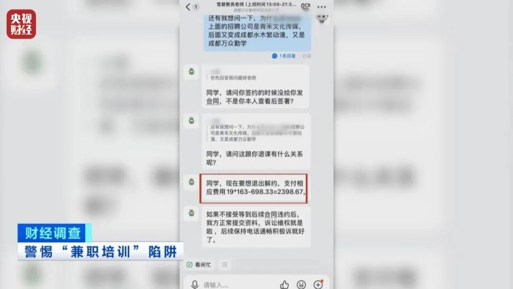 果果无法接受这样的兼职工作,提出退课请求,却被要求支付1400元违约金。 记者发现, 有相同遭遇的年轻人还有许多。从 发布招聘信息、签订培训服务协议、提供培训以及办理课程费用分期服务的几乎都是不同的公司 ,求职者想维权困难重重 。