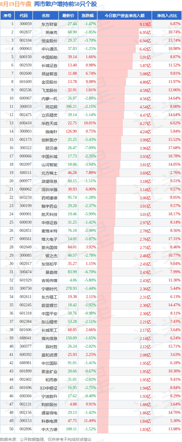 其中排在前三位股票的财务状况如下:东方财富2025年中报显示,公司主营收入68.56亿元,同比上升38.65%;归母净利润55.67亿元,同比上升37.27%;扣非净利润52.52亿元,同比上升35.38%;其中2025年第二季度,公司单季度主营收入33.71亿元,同比上升35.42%;单季度归母净利润28.52亿元,同比上升35.7%;单季度扣非净利润25.53亿元,同比上升31.46%;负债率75.91%,投资收益15.83亿元,财务费用-4864.21万元,毛利率69.0%。英维克2025年中报显示,公司主营收入25.73亿元,同比上升50.25%;归母净利润2.16亿元,同比上升17.54%;扣非净利润2.02亿元,同比上升18.05%;其中2025年第二季度,公司单季度主营收入16.41亿元,同比上升69.67%;单季度归母净利润1.68亿元,同比上升37.98%;单季度扣非净利润1.6亿元,同比上升37.13%;负债率56.11%,投资收益21.48万元,财务费用195.26万元,毛利率26.15%。恒宝股份2025年一季报显示,公司主营收入2.48亿元,同比上升4.45%;归母净利润2393.57万元,同比下降8.75%;扣非净利润1971.73万元,同比上升14.62%;负债率11.17%,投资收益288.51万元,财务费用-406.45万元,毛利率29.31%。