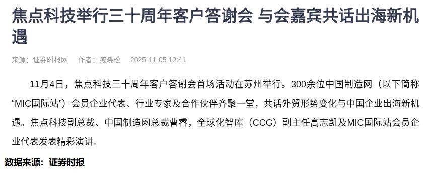 11月4日,苏州金鸡湖畔灯火通明。焦点科技三十周年客户答谢会上,300余位企业家举杯相庆。台上,副总裁曹睿侃侃而谈新航海计划;台下,AI麦可的演示屏闪烁着实时交易数据。我端着香槟站在角落,突然意识到这场盛会与二级市场的诡异共振——当中国制造网流量增长35%时,某些股票的分时图正上演着惊心动魄的假摔戏码。